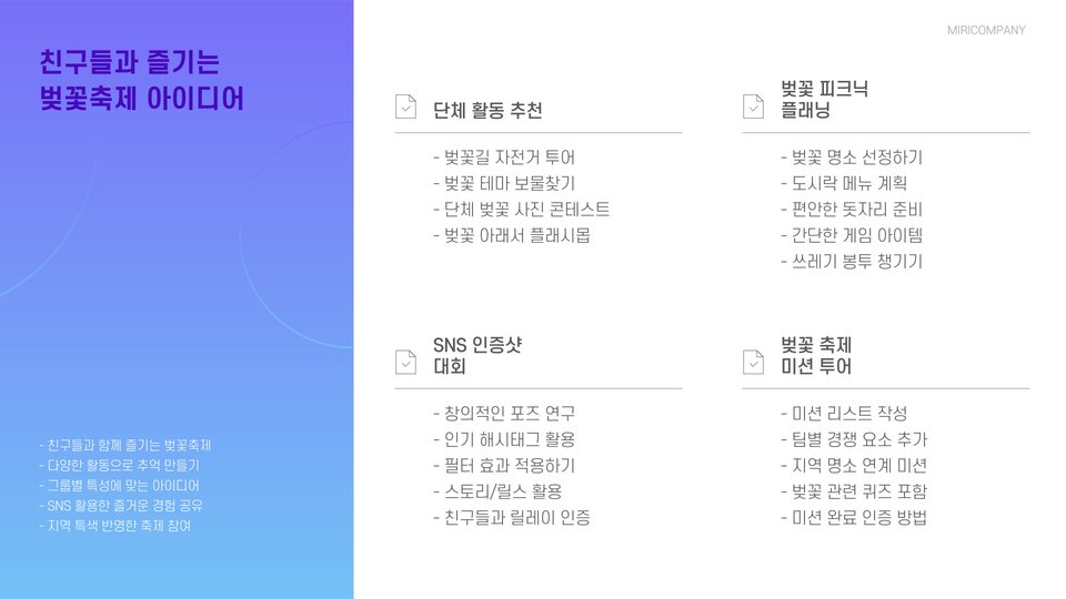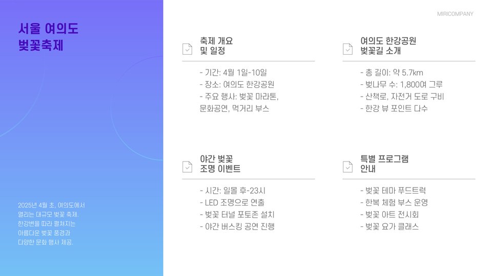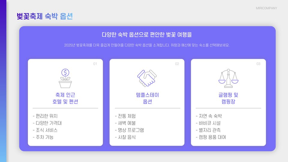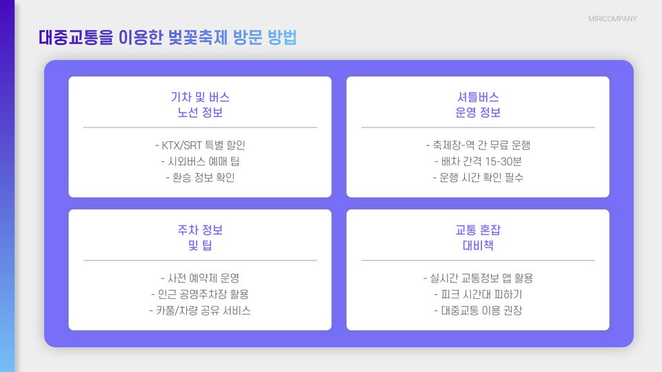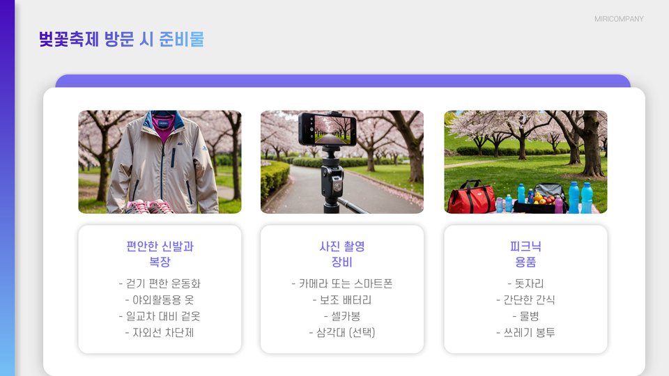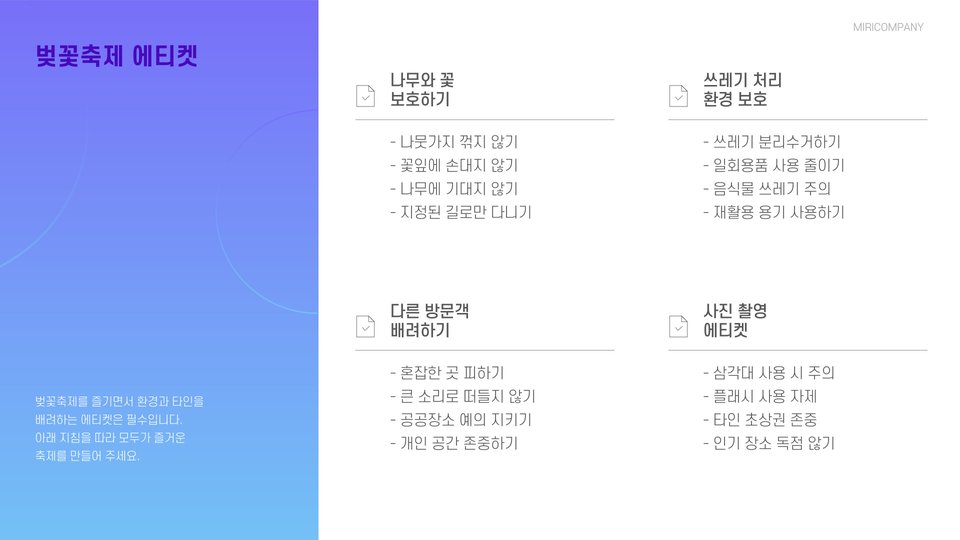 즐거운 벚꽃축제 준비되셨나요? 잊지 마시고 여러분만의 최적의 벚꽃축제를 선택하여 소중한 시간을 만들어 보시길 바랍니다!