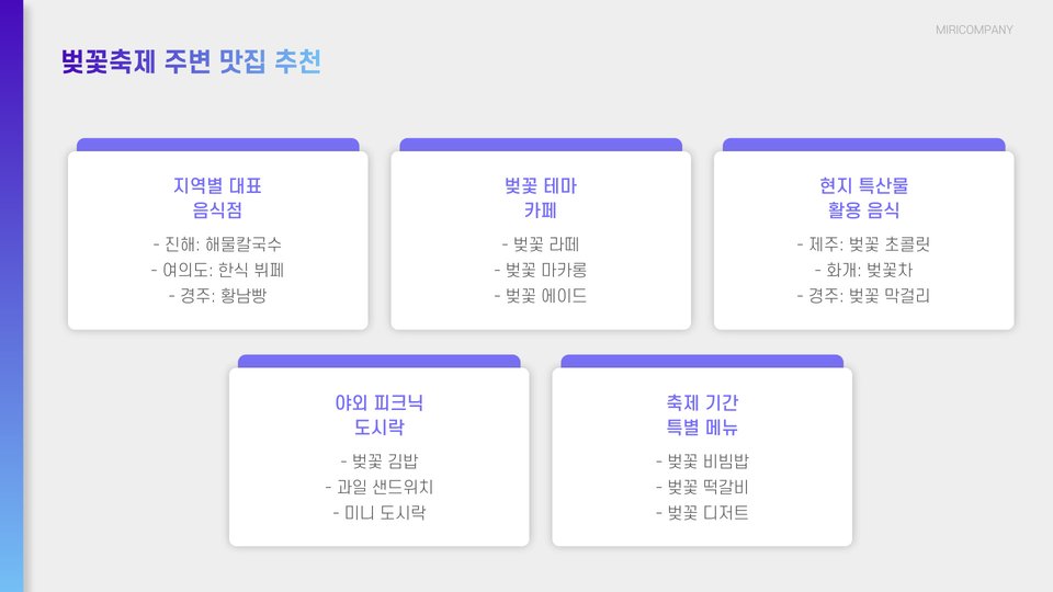 또한 각 축제에서 제공하는 특별 이벤트를 체크해서 놓치지 않도록 하세요. 예를 들어, 진해에서는 포토존과 함께 진행되는 다양한 경품 이벤트가 인기를 끌고 있습니다. 이러한 이벤트는 방문객들에게 즐거운 경험을 제공할 뿐 아니라 귀중한 추억을 만들어 줄 수 있습니다.