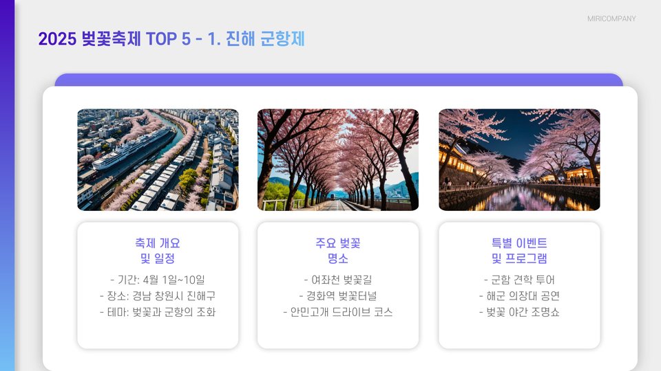 - 진해 벚꽃축제: 문화 공연 및 체험 부스