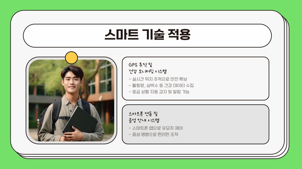 어르신유모차에는 다양한 기술적 요소들이 포함되어 있습니다. 첫째, 조작 방식입니다. 일반적인 유모차와 달리 어르신유모차는 더욱 직관적인 인체공학적 디자인을 가지고 있어야 하며, 쉽게 조작할 수 있어야 합니다. 손잡이의 높낮이를 조절할 수 있는 기능이나, 이동 시 편리한 분리형 시스템이 있는지 확인해야 합니다.