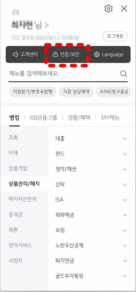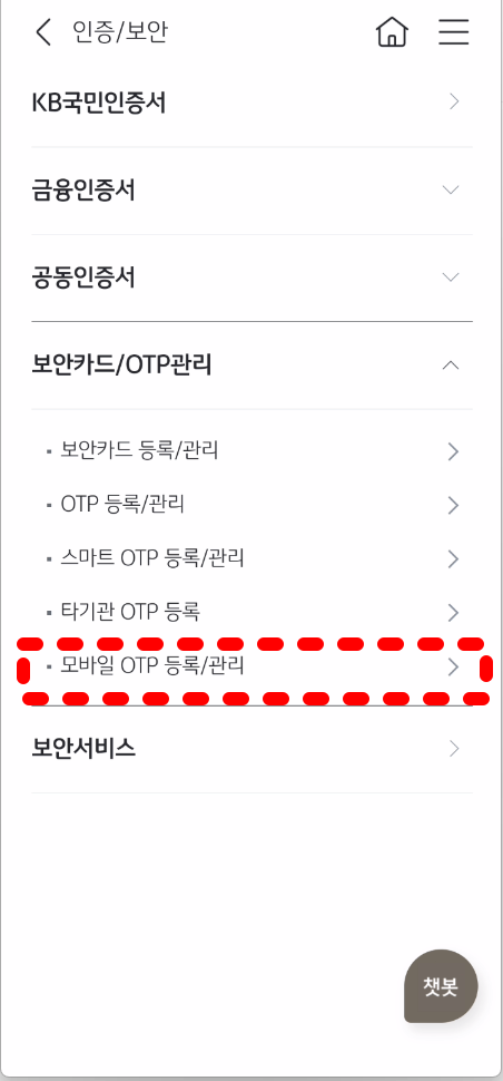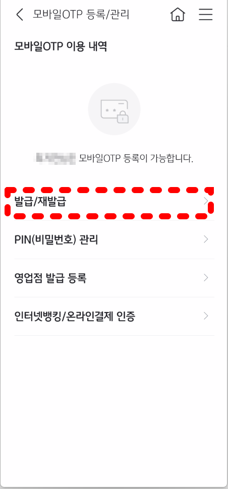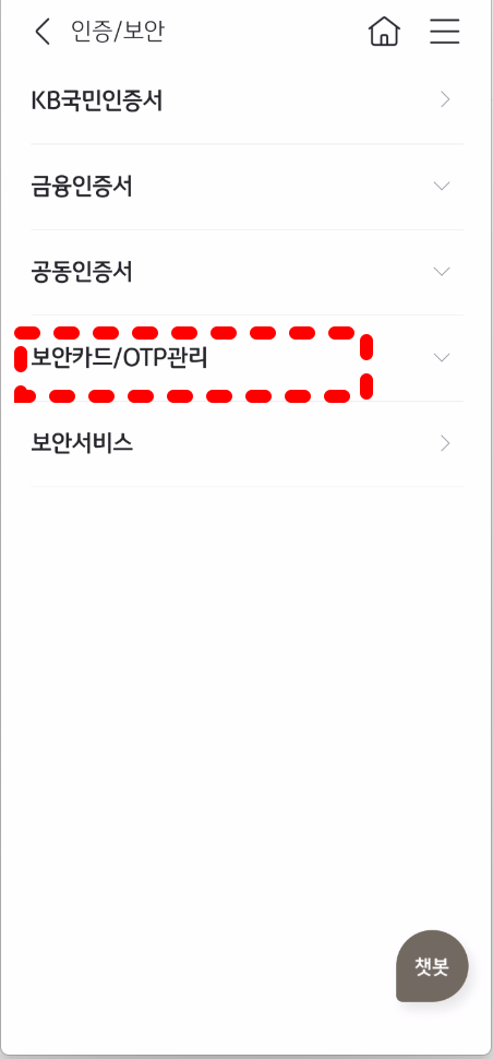 3. 보안카드/OTP 관리 탭을 선택합니다