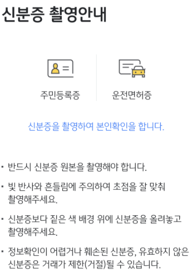 촬영한 신분증의 내용을 다시 확인하는 과정으로 틀린 부분이 없는지 확인하고 맞으면 다음으로 진행합니다.