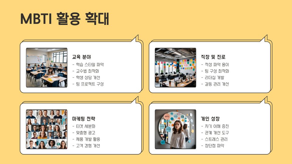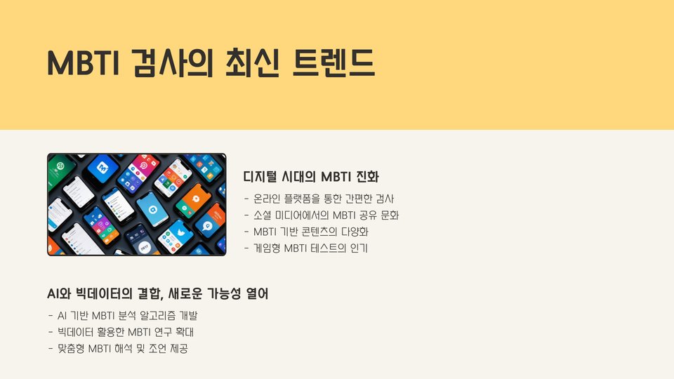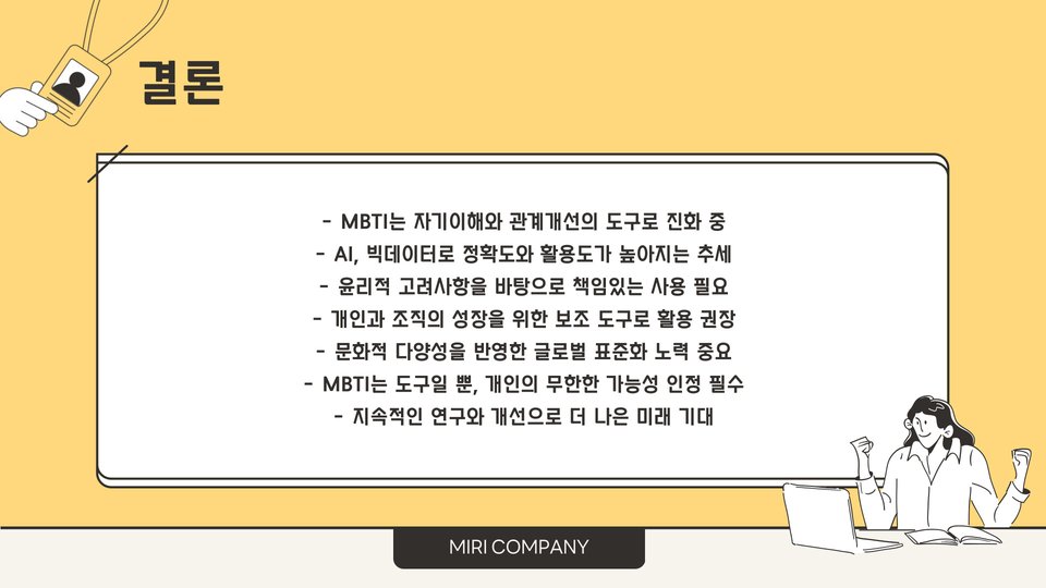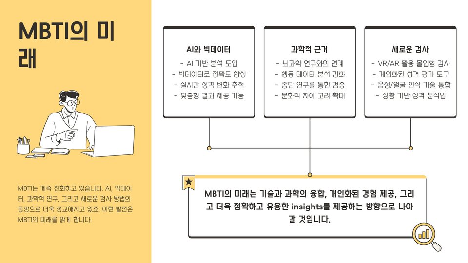• MBTI 검사는 앞으로 더욱 다양한 분야에서 활용될 것입니다.