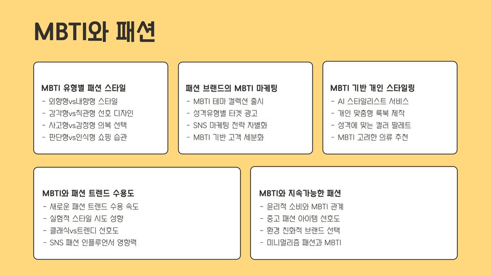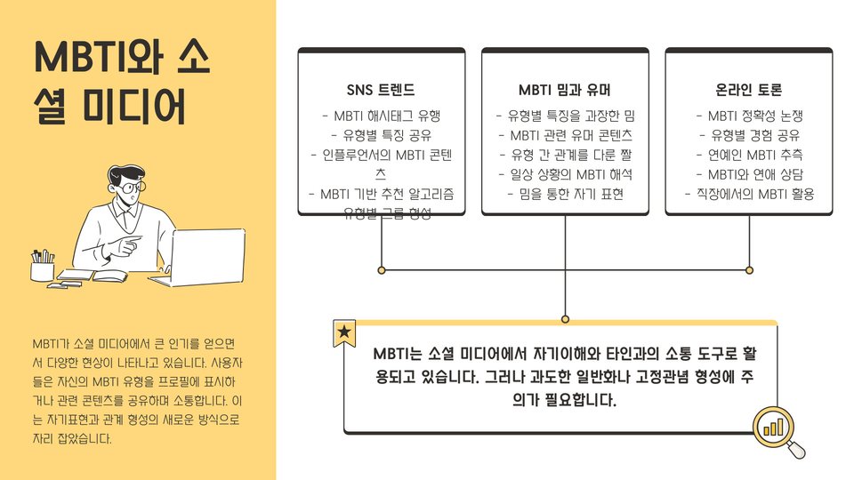 • 소셜 미디어와의 결합으로 MBTI 관련 콘텐츠가 인기를 끌고 있습니다.