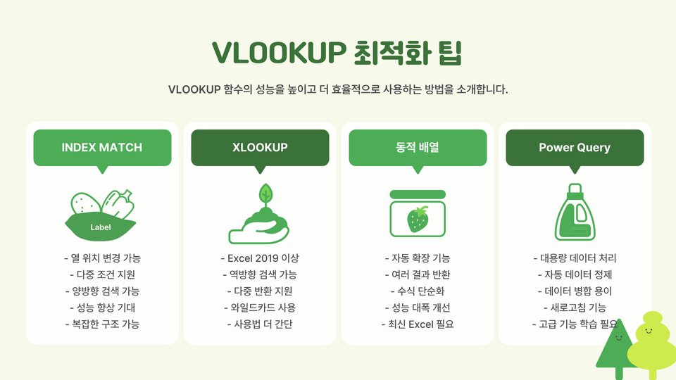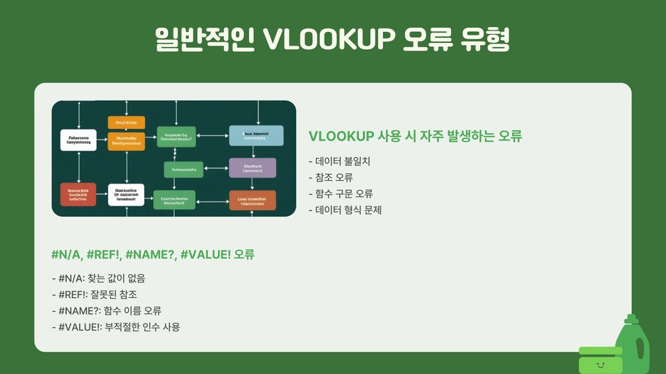 이러한 오류들은 초보자에게 혼란을 줄 수 있으며, VLOOKUP을 제대로 활용하지 못하게 만듭니다. 각 오류의 원인과 해결 방법을 이해하는 것이 중요합니다.