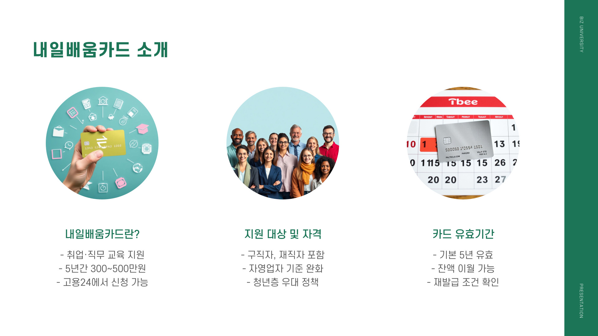 - 내일배움카드는 평생교육 지원 제도입니다.