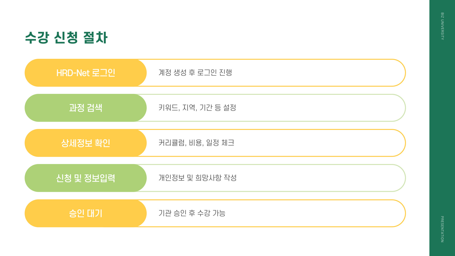 - 신청 마감일 체크: 각 과정의 신청 마감일을 확인하고, 늦지 않도록 미리 신청하세요.