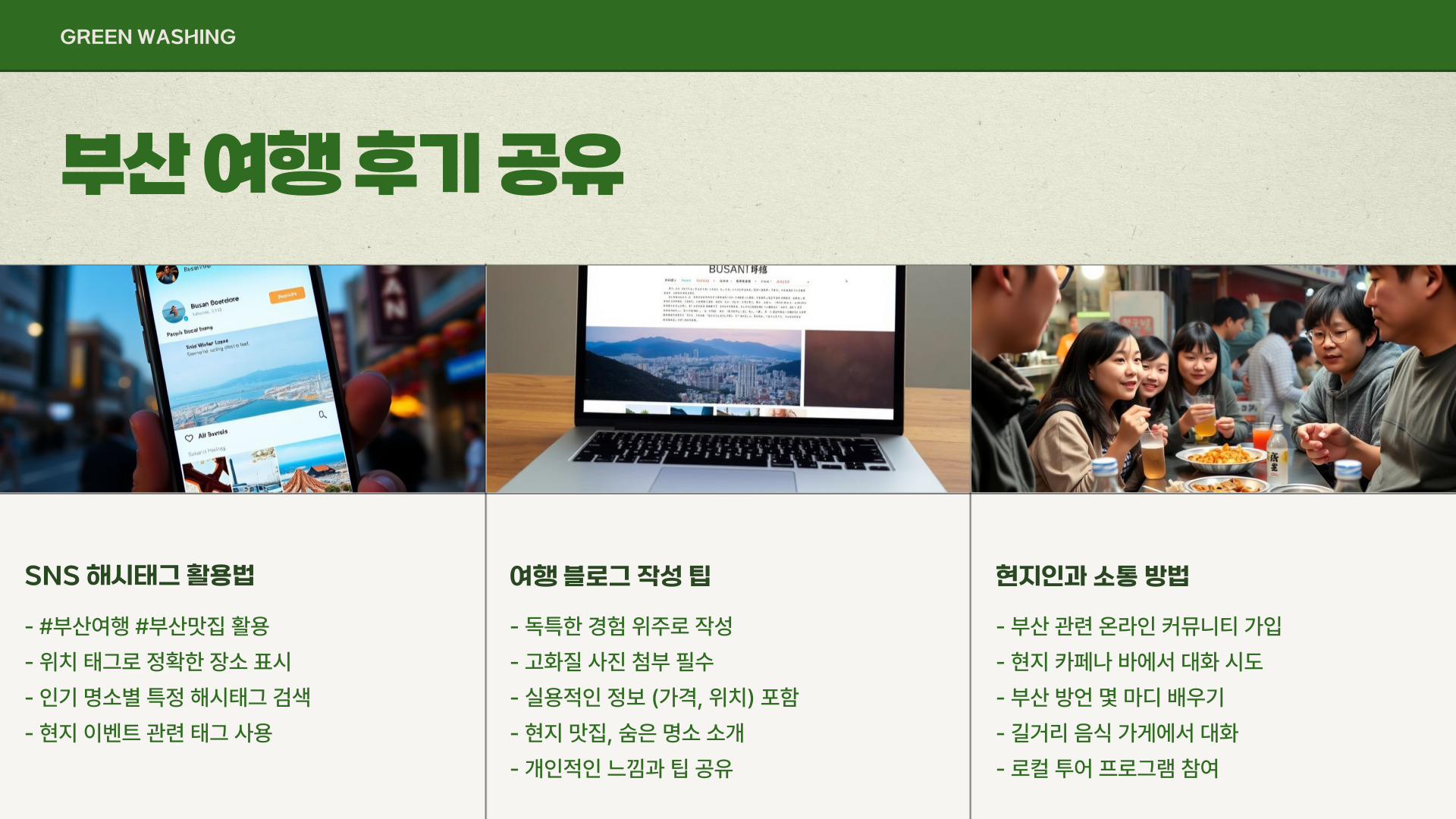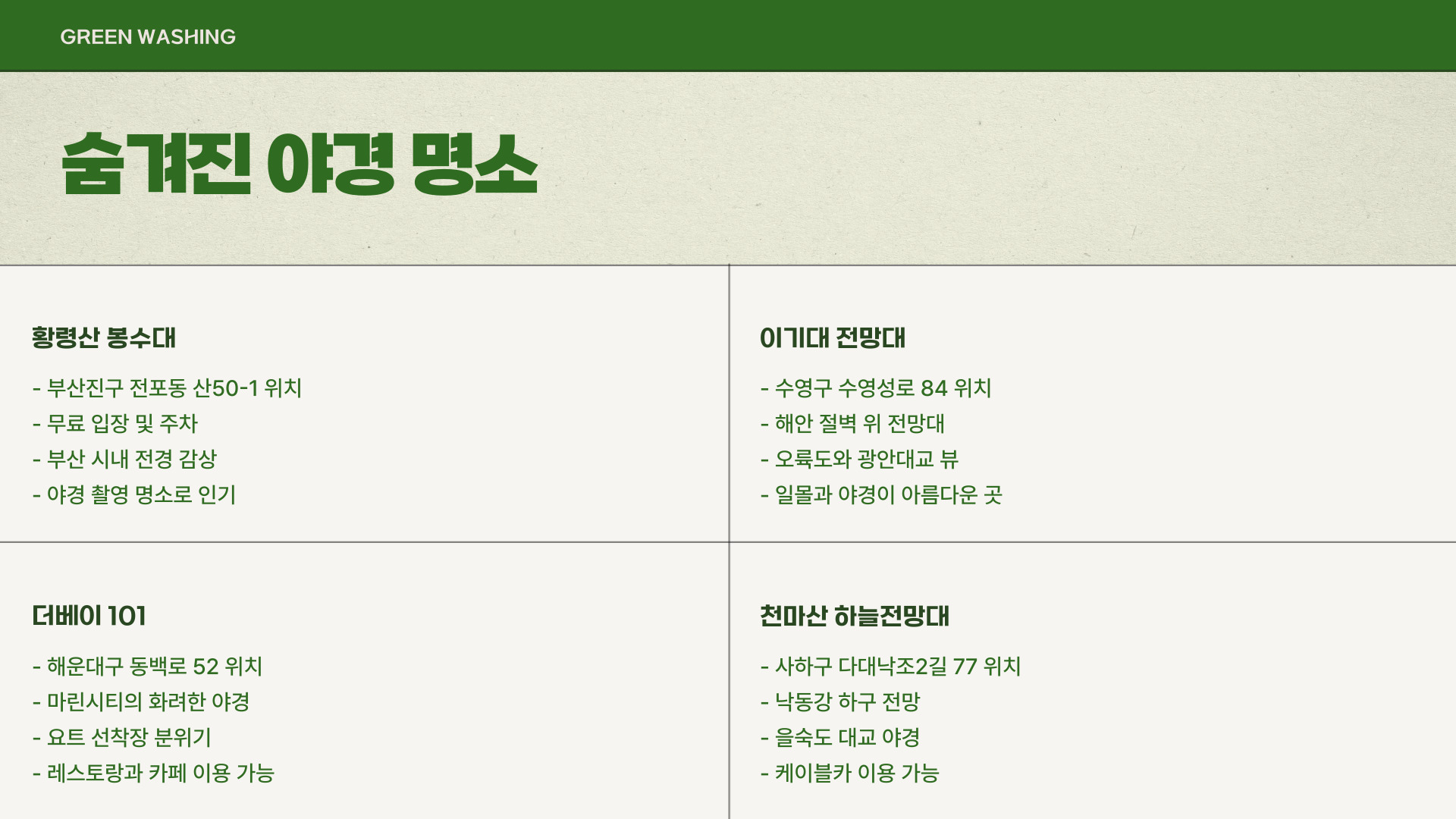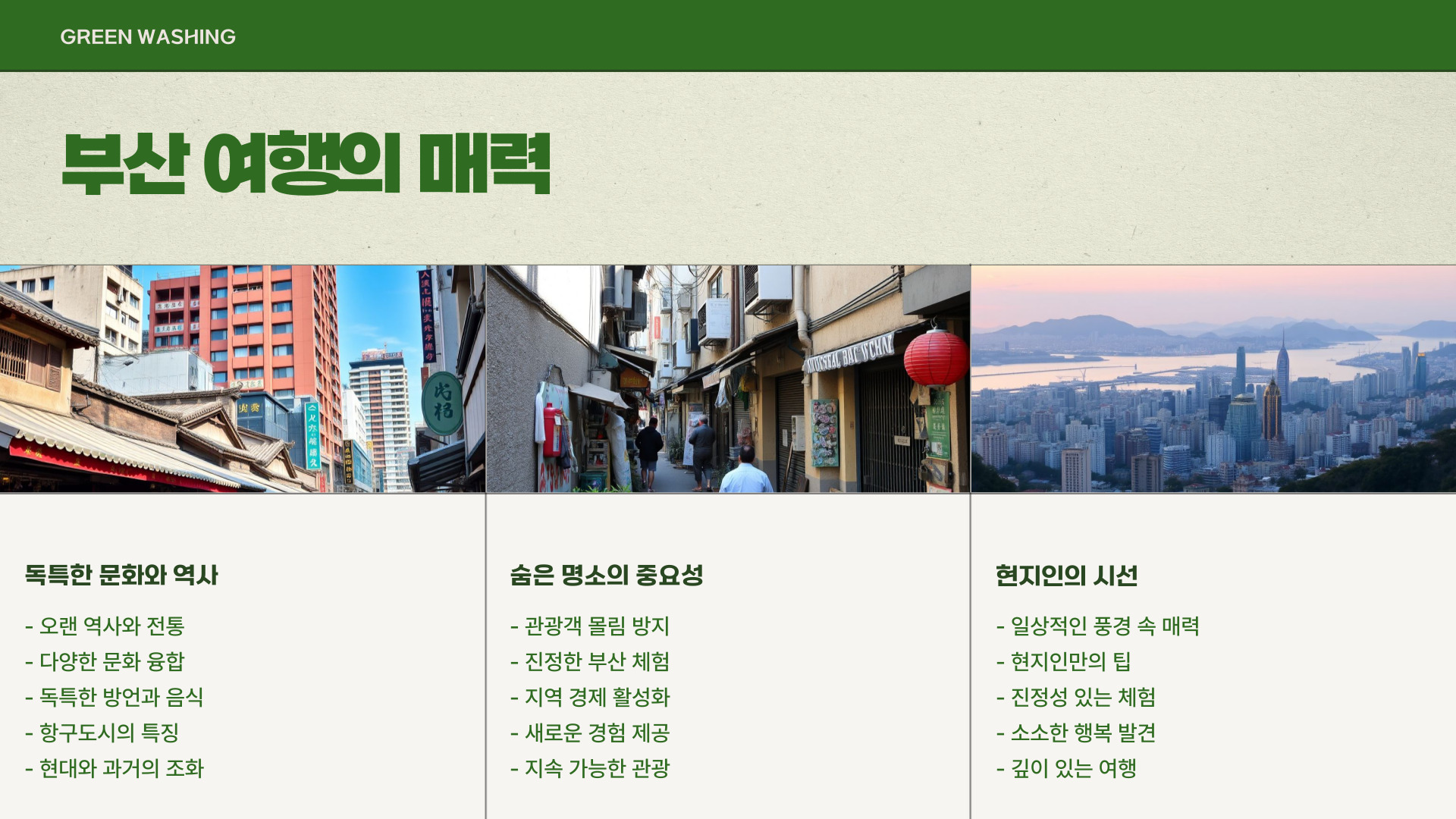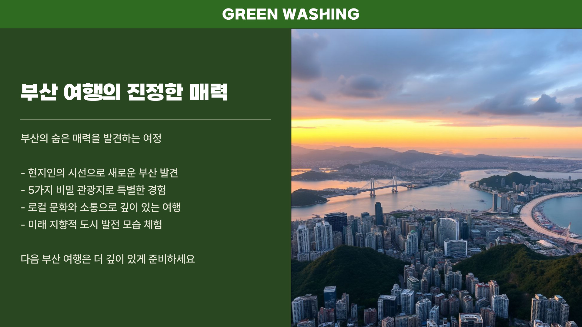 - 부산의 숨겨진 관광지에서 다양한 경험을 즐길 수 있음.