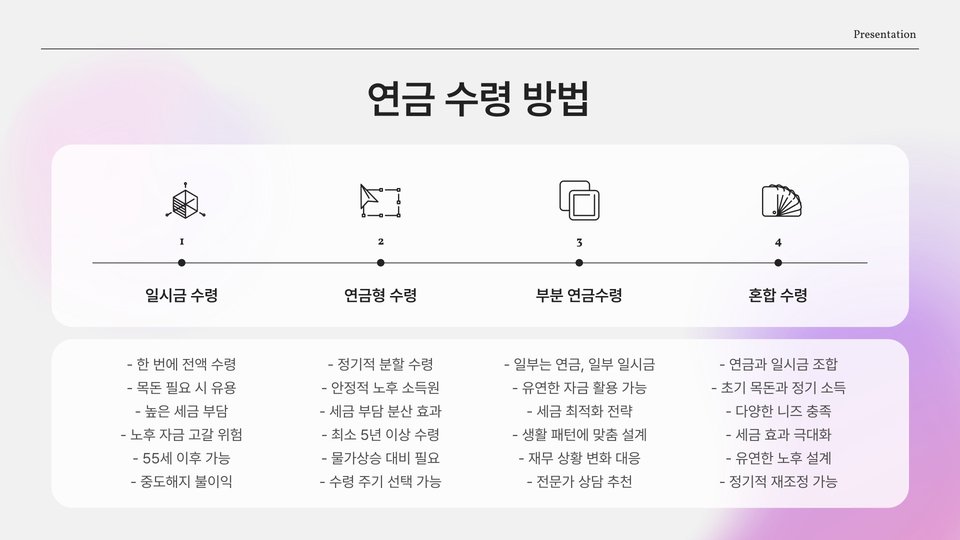 - 55세 이후에만 수령 가능