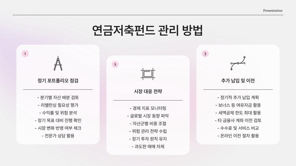 연금저축펀드는 노후 준비에 있어 매우 효과적인 방법이지만, 단순히 가입하고 방치하는 것이 아니라 주기적으로 운용 상태를 점검해야 합니다. 이런 점에서 정기적인 점검이 무엇보다 중요하고 필수적입니다.