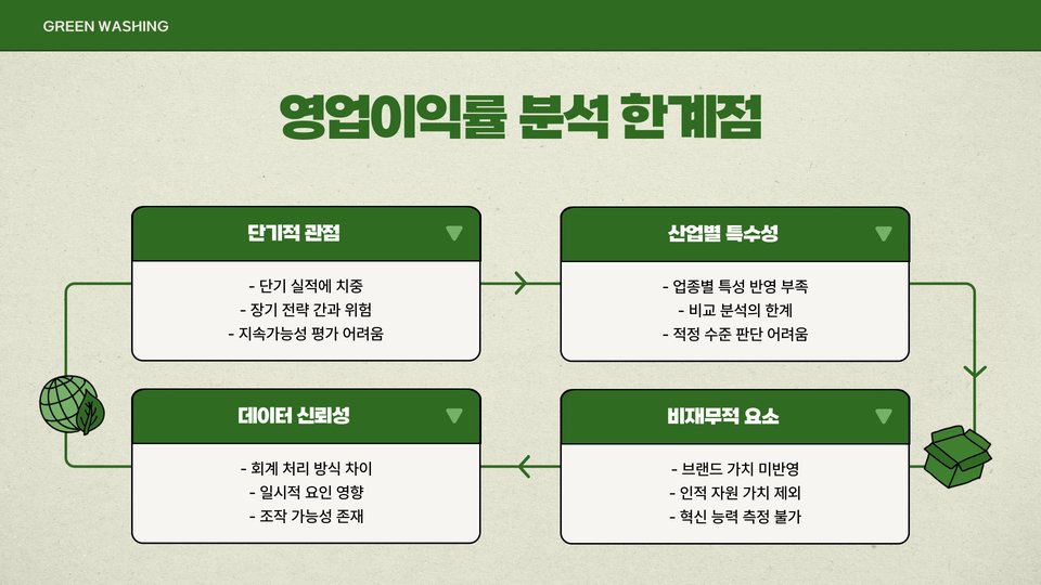 영업이익률은 단순히 한 기업의 성과를 측정하는 데 그치지 않고, 여러 기업 간의 비교를 통해 강점을 파악하는 데도 유용합니다. 예를 들어, D회사와 E회사의 영업이익률을 비교하면, D회사가 20%인 반면, E회사는 10%라면, D회사가 더 효율적인 운영을 한다고 볼 수 있습니다. 이러한 비교는 투자자와 경영진이 전략을 세우는 데 중요한 통찰력을 제공합니다.