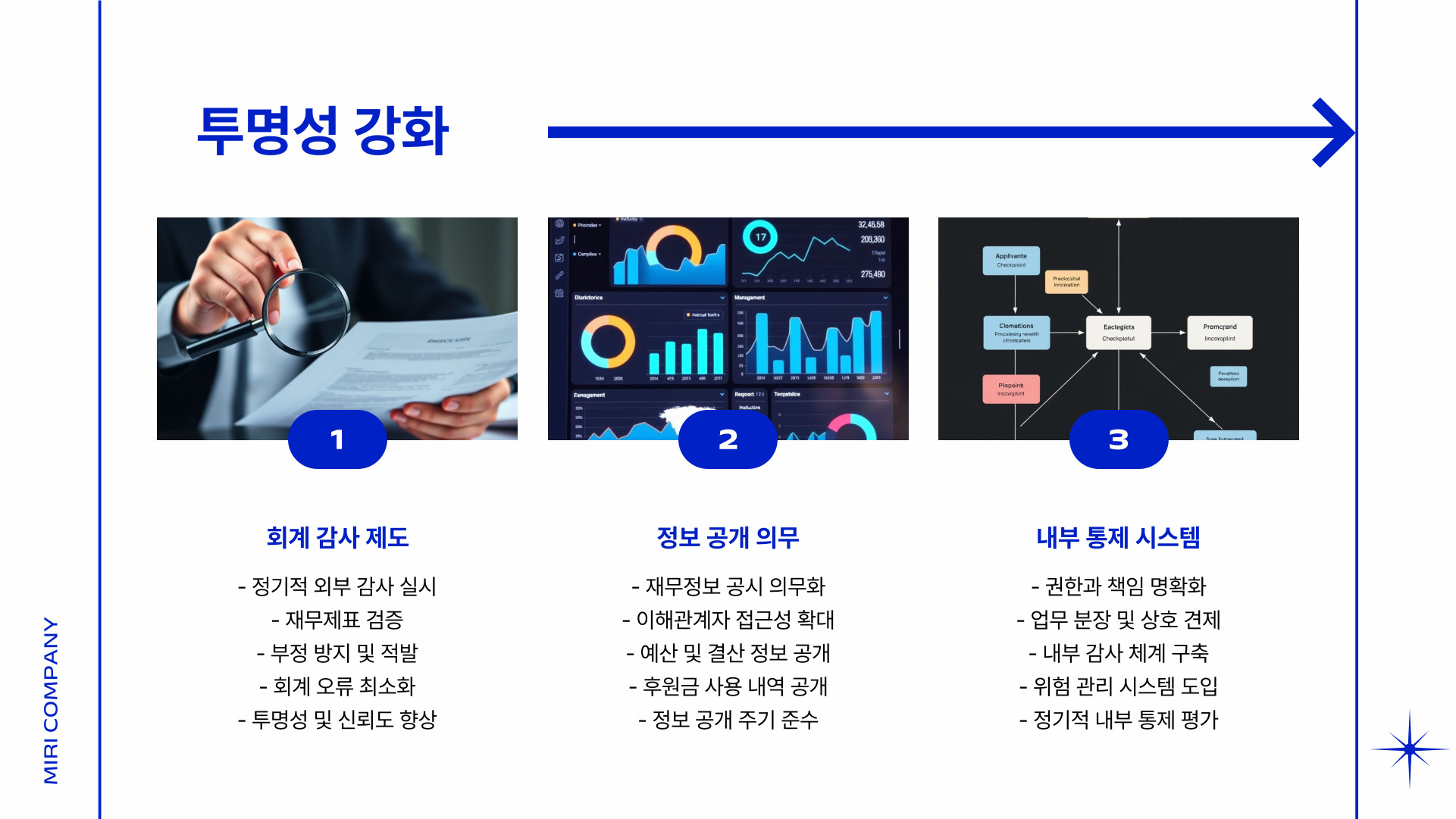 - 정확한 회계 기록은 신뢰성을 높입니다.