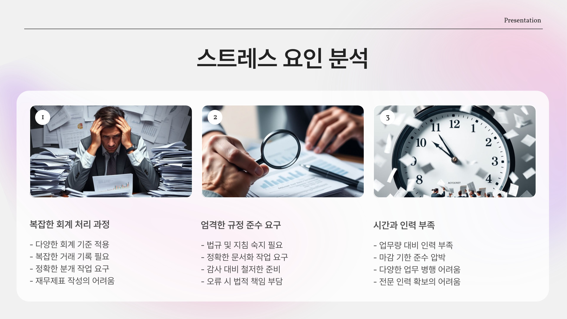 Tags: 재무회계, 스트레스 해소, 회계 교육, 프로세스 자동화, 팀워크, 내부 감사, 문서 관리, 회계 규칙, K-IFRS, 회계 소프트웨어