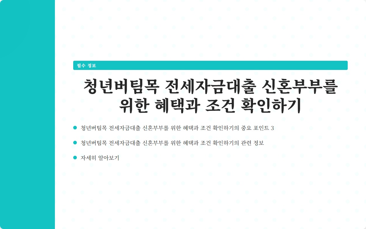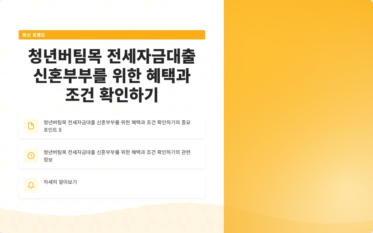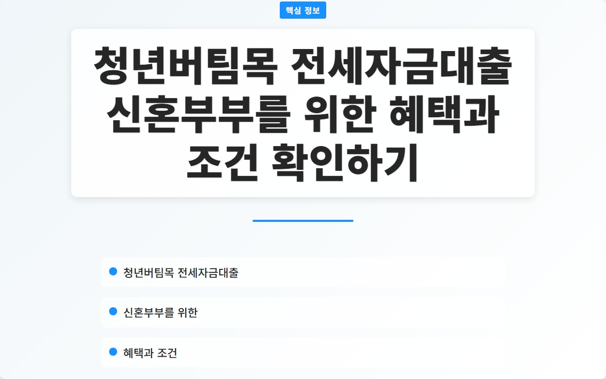 청년버팀목 전세자금대출 신혼부부를 위한 혜택과 조건 확인하기