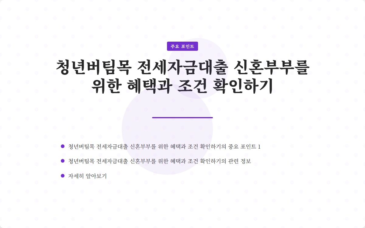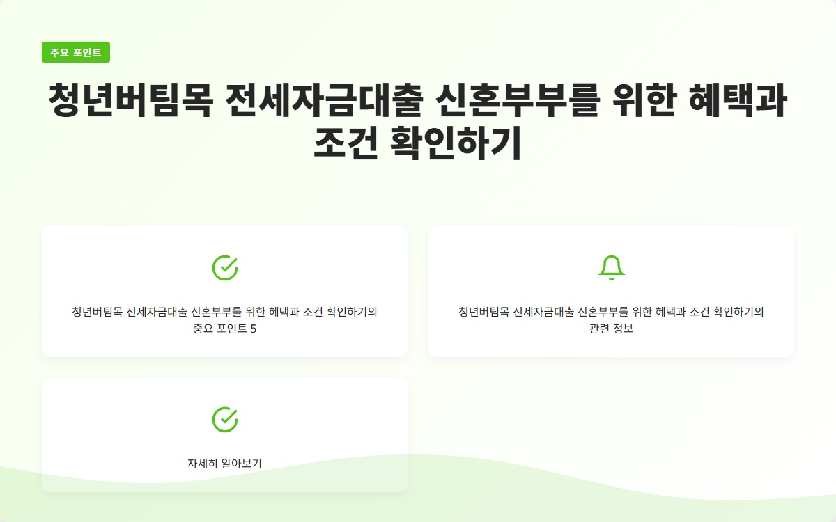 - 청년버팀목 전세자금대출은 신혼부부에게 유리한 조건으로 제공됨
