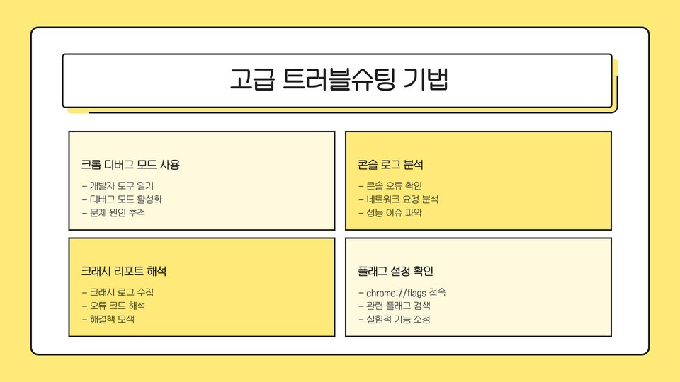 또한, 브라우저 내의 확장 프로그램이나 플러그인 중 일부가 충돌을 일으키는 경우도 있습니다. 이러한 문제는 확장 프로그램을 하나씩 비활성화하여 점검하고, 문제의 원인이 되는 확장 프로그램을 찾아내는 과정이 필요합니다. 이 과정은 다소 번거로울 수 있으나, 차근차근 진행하면 충분히 해결할 수 있습니다.