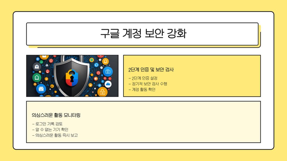 | 이중 인증 기능 활성화 | 계정 보안 강화 |