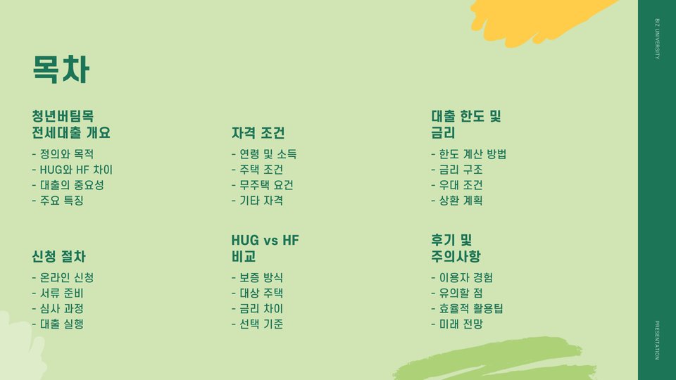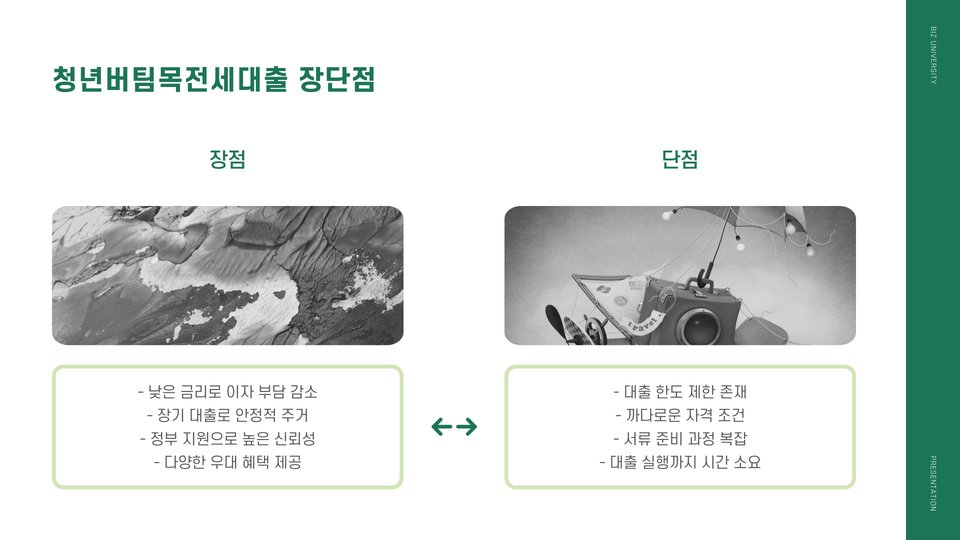 - 청년버팀목전세대출은 청년들의 전세자금 부담을 줄여주는 프로그램입니다.